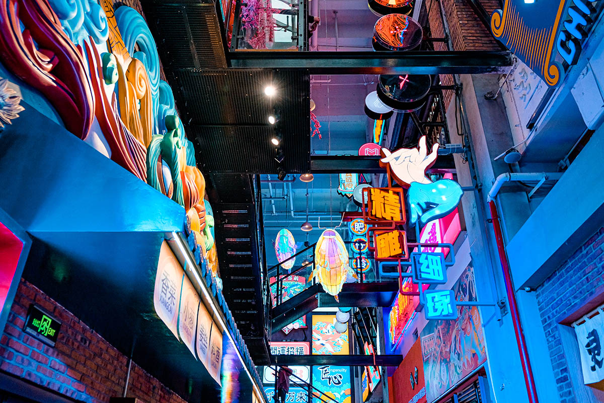 Shanghai Joy City in Jing'an, renowned for its distinctive rooftop Ferris wheel, has become an iconic landmark of romance in the metropolis. The upcoming renovation and upgrade of the Neon Street and Weiyang Street in Shanghai Jing'an Joy City are set to pioneer a new trend in themed shopping center streets. We have incorporated elements with Chinese cultural imprints, such as the gluttonous Taotie and the auspicious koi, and through artistic techniques, we have seamlessly integrated their imagery with the space, creating several fantastical new nodes. Moreover, we have meticulously planned the entire space in multiple dimensions, significantly enhancing the atmosphere to cater to the night-time economy.